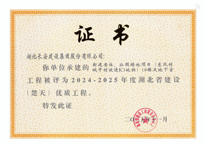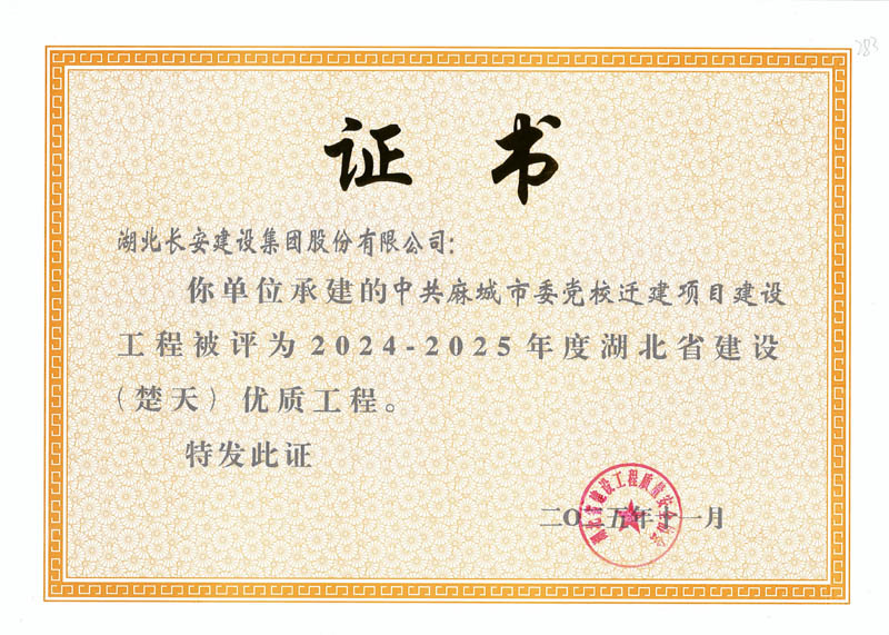 9项工程获评2024-2025年度湖北省(楚天)优质工程