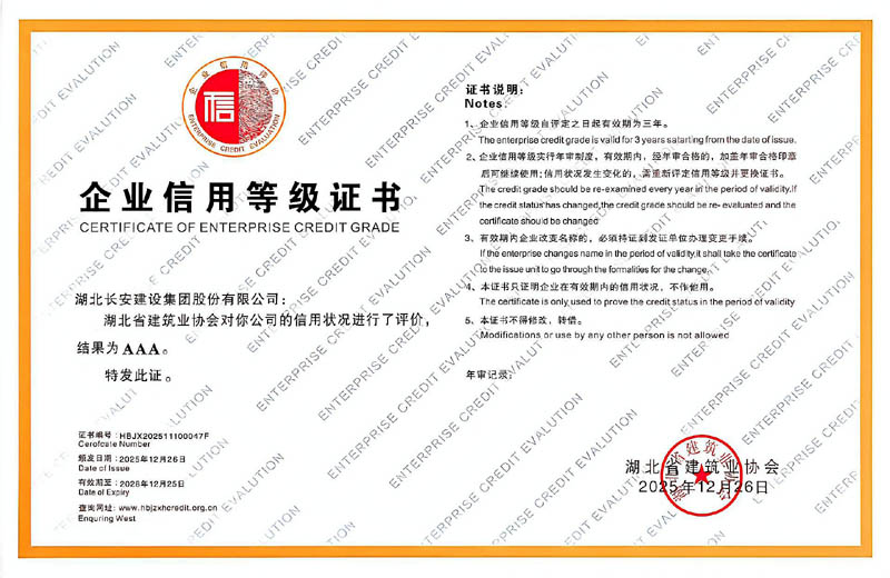 集团公司荣获湖北省建筑业协会AAA信用评价认定