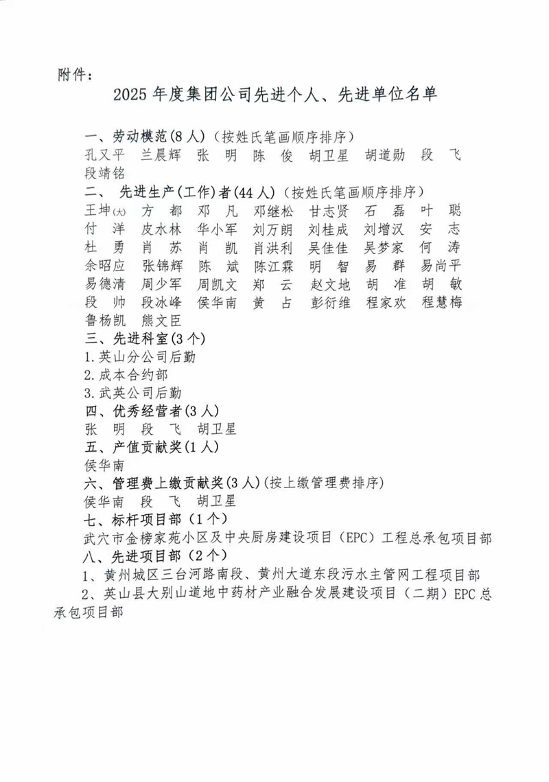 2025年度集团公司先进个人、先进单位名单