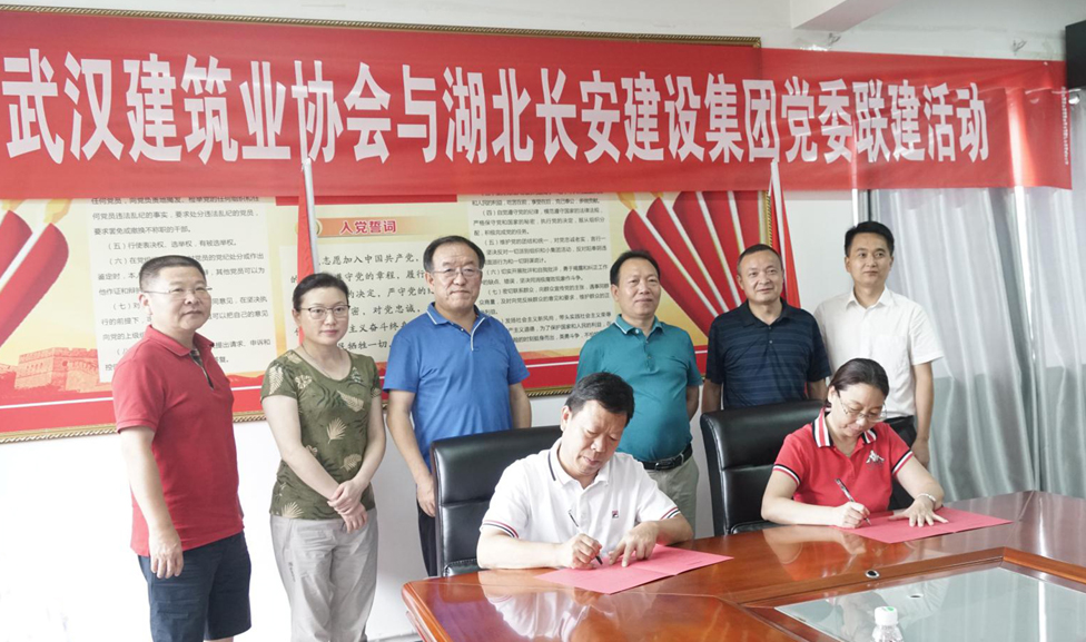 8月10日,星期六。武汉建筑业协会副会长李淼磊一行9人莅临集团指导工作,并与集团签订结对联建协议。